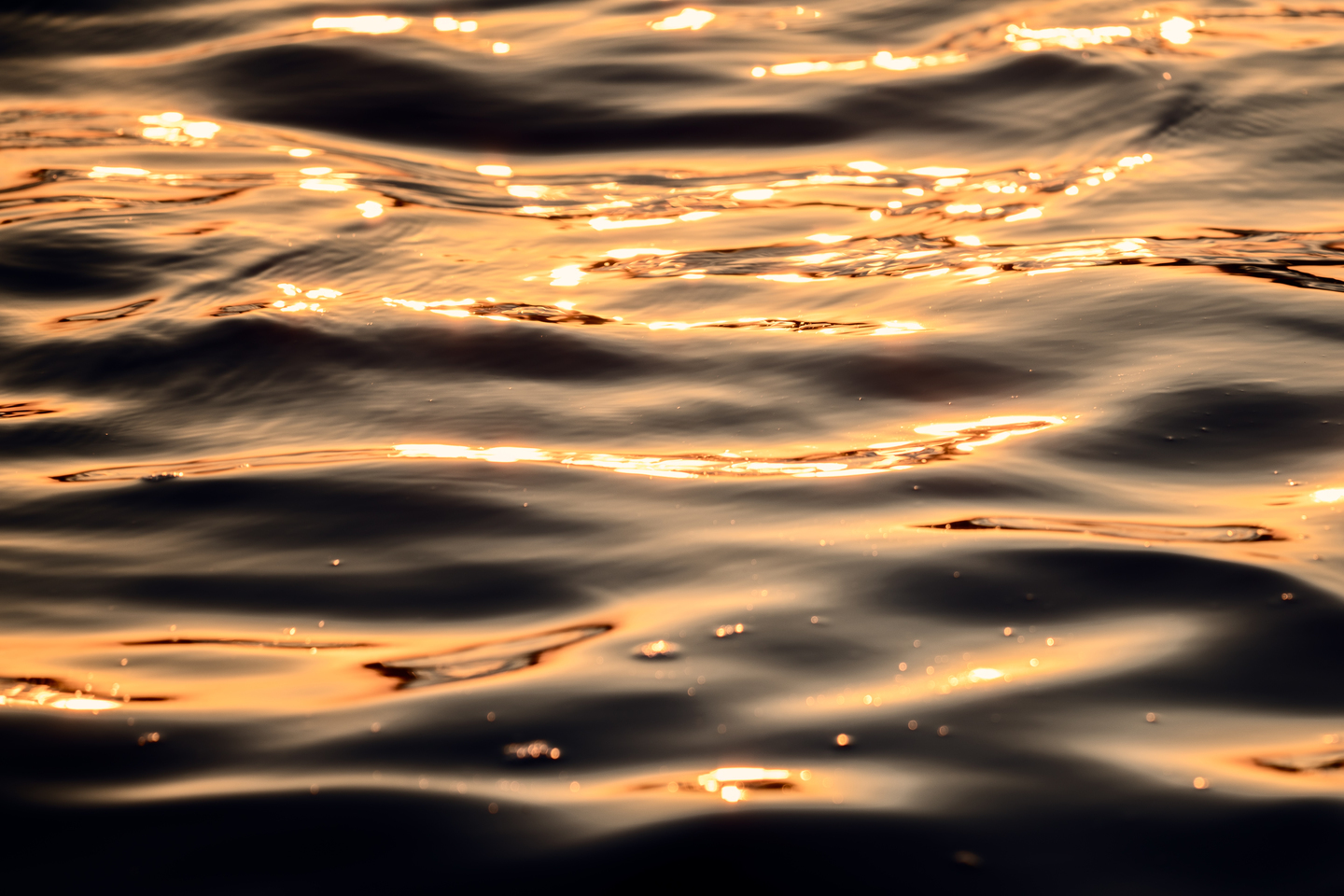 夕日で黄金色に輝く海面が綺麗だったので、望遠レンズで切り取ってみた1枚。望遠レンズを使うことで、普段とは少し違った海の写真も撮ることが出来ます。