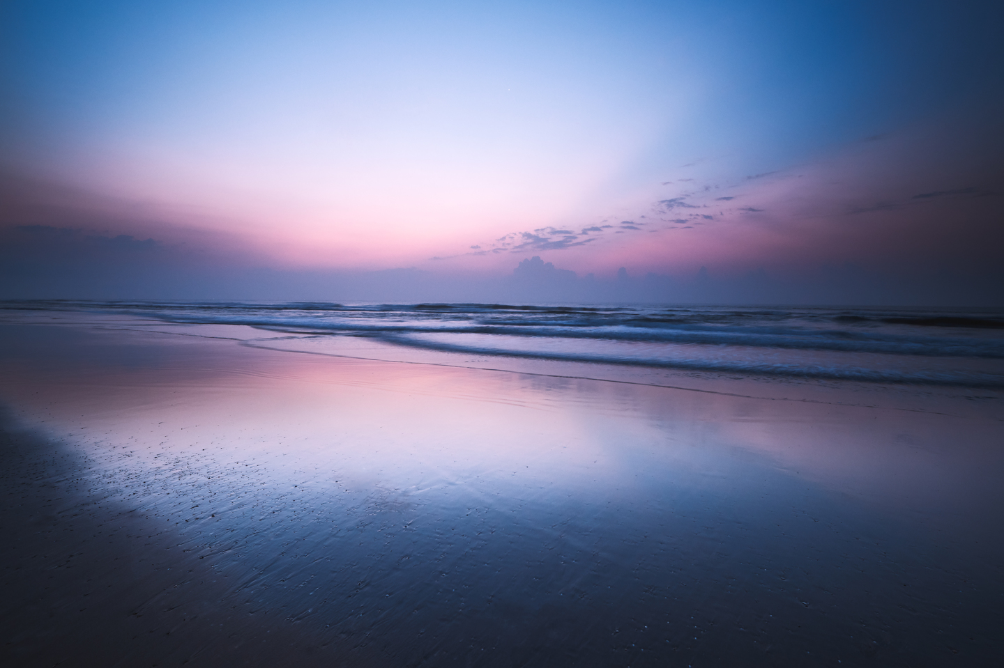 九十九里海岸にて、早朝に撮影。穏やかな海岸では、ビーチに空の色が映り込み美しい情景を作り出してくれます。