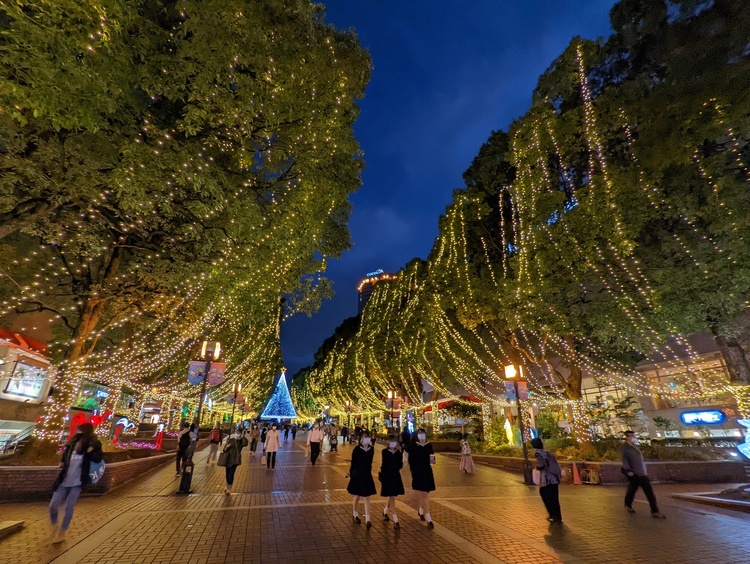 また「夜間モード」も面白い機能の一つです。スマートフォンのカメラは1回のシャッターを切ったときに、実は複数枚の画像を取得しています。露出の明暗差、ボケとブレの量、トーンやノイズなどをその何枚かの画像を解析して、最適と思われる画像を写真としてアウトプットしてくれているのです。「夜間モード」は光源を飛ばさずに暗部を持ち上げ、ノイズを抑制して手ブレを低減した画像を写しだしてくれます。