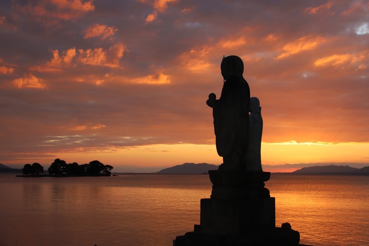 宍道湖の夕陽は「日本の夕陽百選」に選ばれるほど美しく、湖に浮かぶ嫁ヶ島が見えるこのスポットは駐車場やテラスやベンチ、歩道なども整備されており地域に愛されています。また、観光客も沢山訪れることから日没前にはたくさんの人が集まり夕陽に照らされます。その情景に心を打たれました。