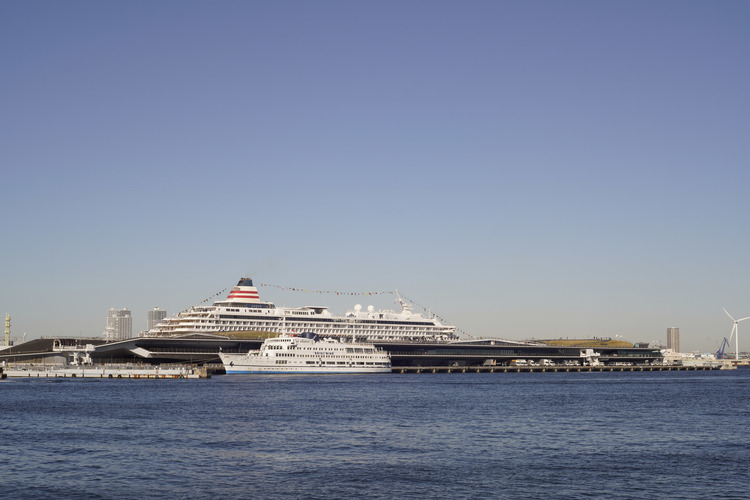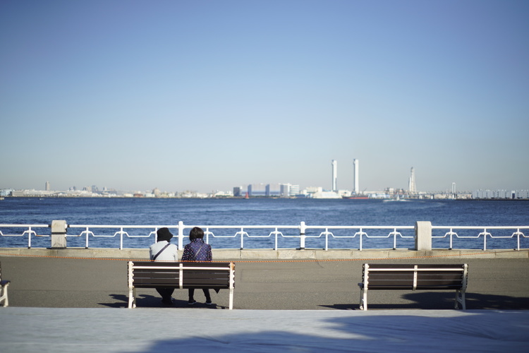 お天気の良い横浜山下公園からの大さん橋。絞りを絞って撮影しているのでオールドレンズといえども非常にシャープな画像になります。ホワイトバランスはAUTOで撮影しているので、レンズの状況(アトムレンズ特徴の黄ばみ)の影響が少しでている感じです。絞りを浅くして撮影すると、シーンによっては色収差が大きく発生する場合があります。画像を拡大すれば分かりますが、ベンチの白い部分や白い鉄柵の部分などで発生しているのが分かると思います。