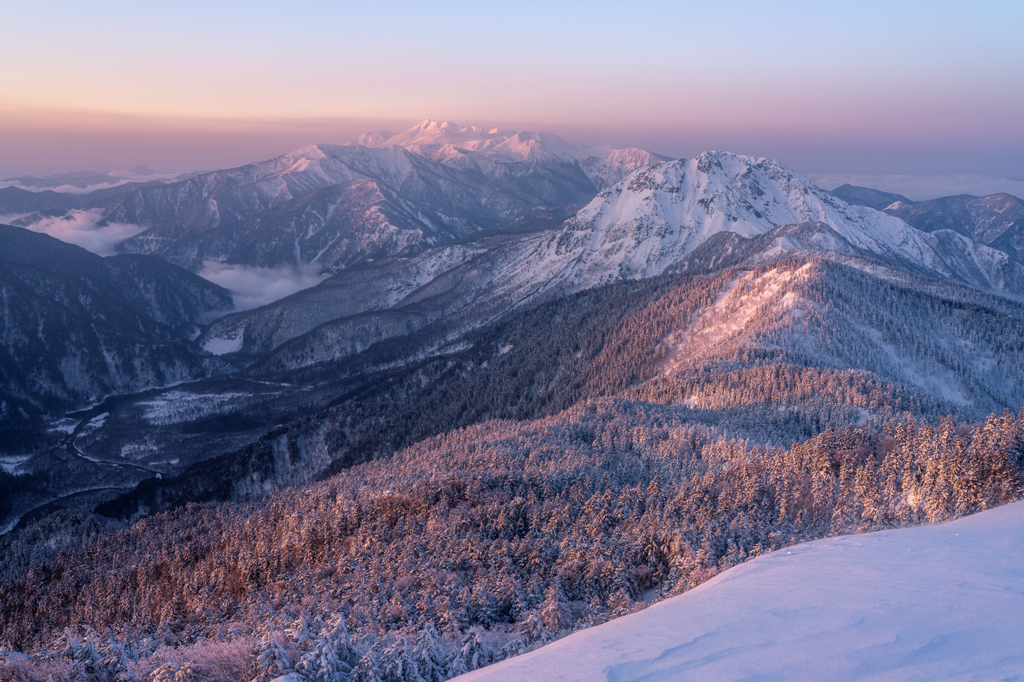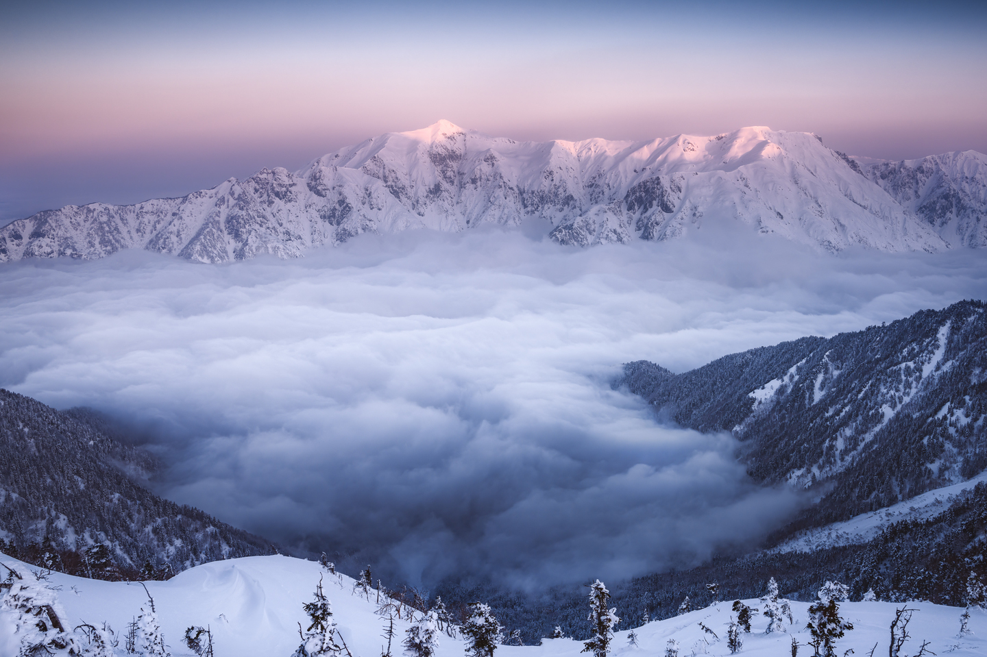 この2枚は北アルプスの西穂山荘の近くで撮影しました。冬山登山はしっかりとした装備が必要で、撮影機材を持っていくのも一苦労ですが、その苦労に十分見合う風景に出会うことができると思います。