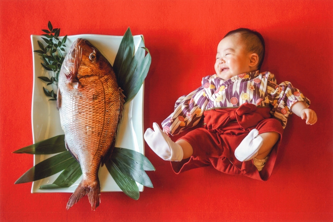 構図と色彩効果と赤ん坊の表情の勝利です。窓際からのサイド光をうまく活かして、お目出たい二つの主役を立体的に描写しました。まるでタイを見て喜んでいるような赤ん坊の楽しそうな表情は、画面の外の大勢の家族親戚の方々の努力によるものでしょうね。