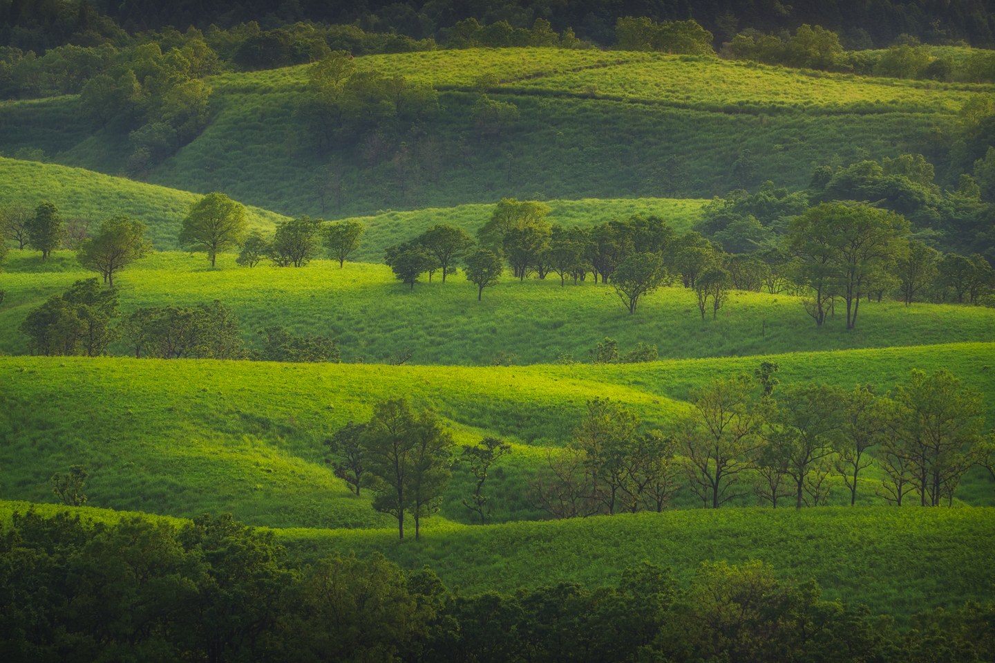 熊本・阿蘇にて。広大な阿蘇の景色の中、ふと遠くを見渡した時に、森の中から見えた風景が気になり切り撮った一枚です。