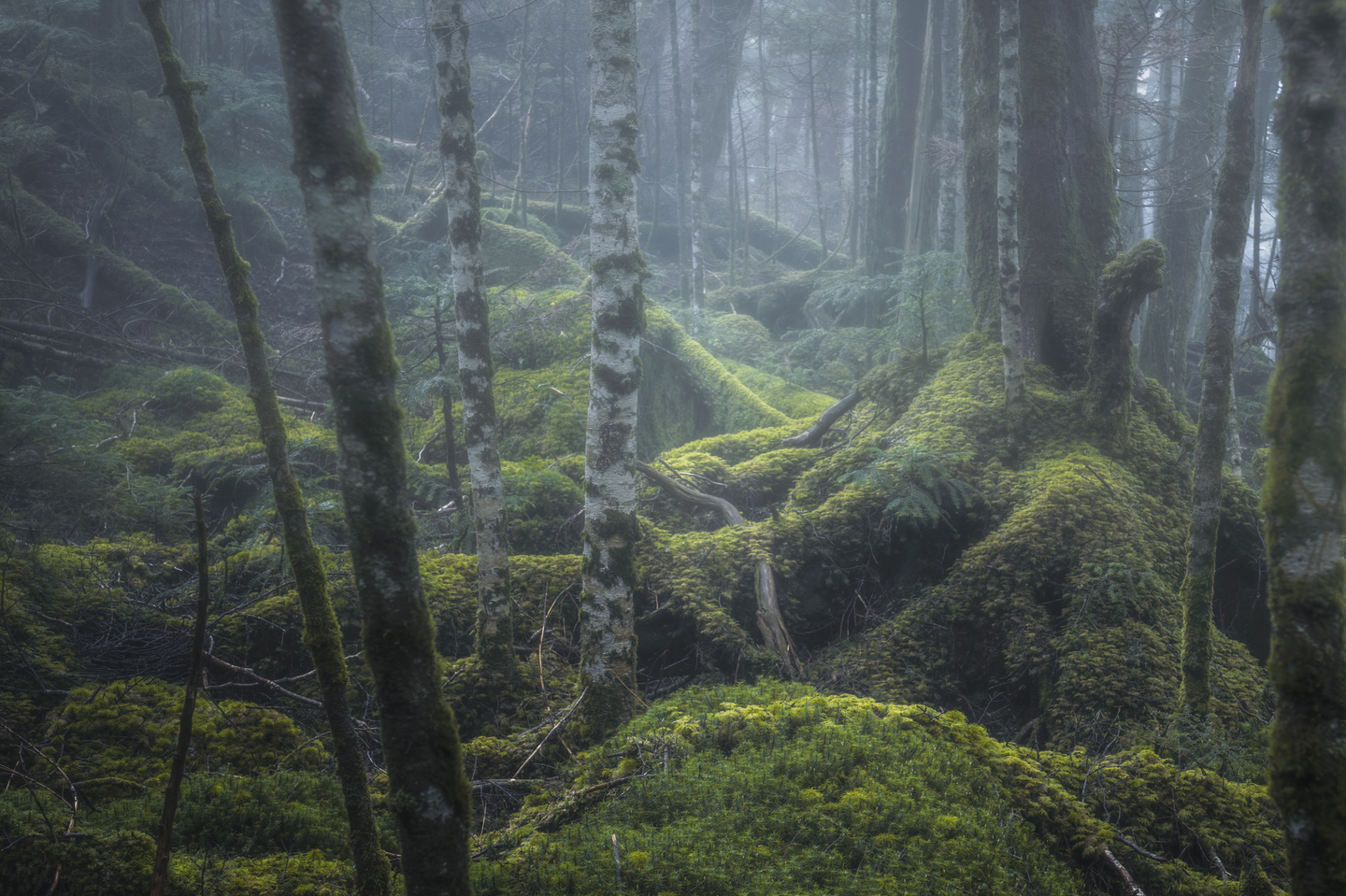 白駒池の苔の森にて。薄暗い中での手持ち撮影だったため、ISO感度は高めになってしまいましたが、森の中では手持ちで素早く何かを感じた瞬間を切り取りながら撮るのも面白いと思います。