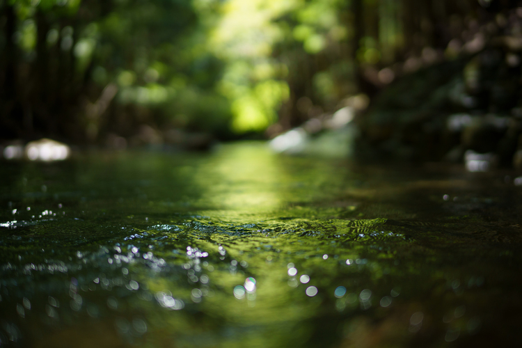F1.4で撮影。被写界深度の浅さを生かして水面にピントを置き、きらめく流れを前ボケとしました。