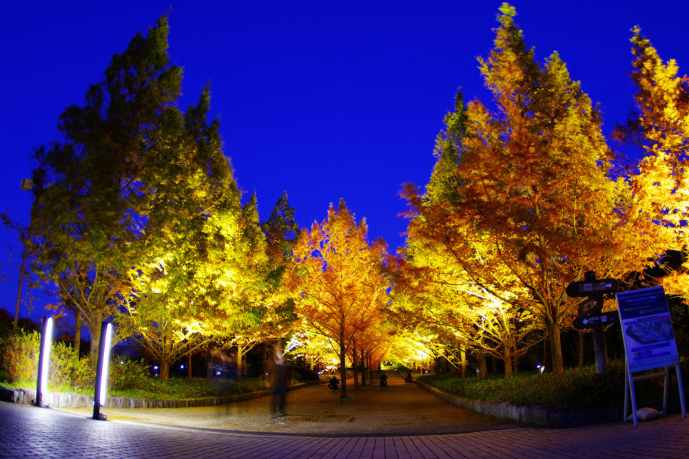 逆光を意識して露出補正プラスでふんわり撮るのがおすすめです。並木のライトアップを撮るなら焦点距離20mm程度の広角レンズを持っていくといいでしょう。