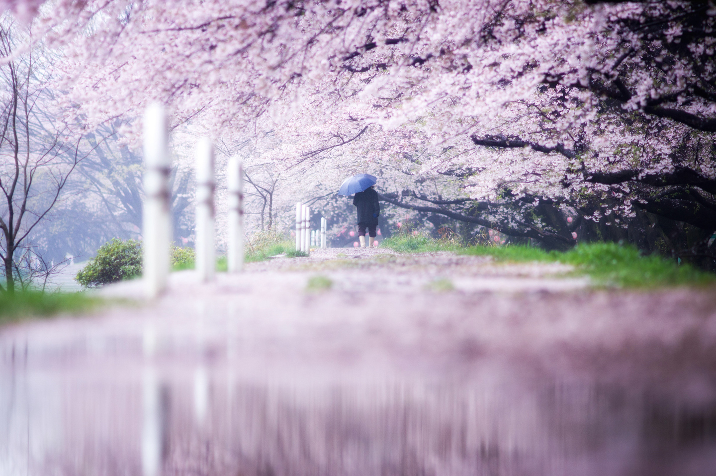 そしてどう撮るか考える。最初から下の反射を考えていたわけではなかったが、望遠レンズを装着したカメラを地面に近づけると予想以上の反射が液晶モニターに見えた。そして人にピントが欲しいので拡大し調整。上下の淡い桜色に包まれたおじいちゃん、傘、白い長靴。複数のキーになるものが追加され普段見慣れない雰囲気の桜の写真となってくれた。