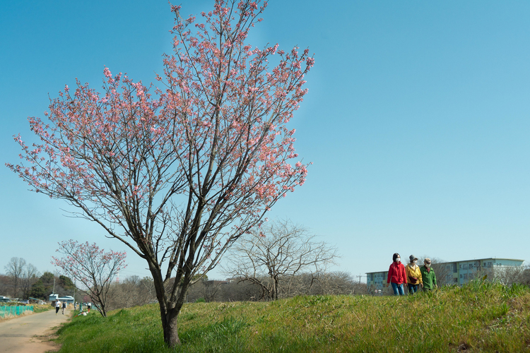街を歩いていて常に意識している最高の色の組み合わせは信号機並び。赤黄青(緑)は都心でも珍しい場面なのに、郊外の川沿いでまさかの登場。見つけた場所から少し下がって、このハートの形の桜の木まで戻ってシャッターを切った。カメラをあと40cmぐらい下げて人とその奥にある団地との被りをなくせればもっと良くなったかな~と帰ってきて気が付く。カメラの高さはそれでいいのか?最後の調整で再度確認しなければと思った写真になった。
