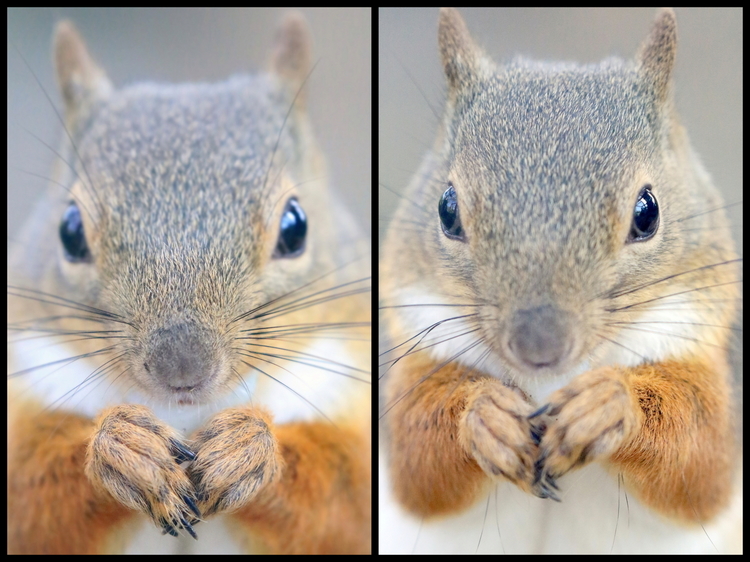 アップで動物を狙う時、オートフォーカスのフレーム設定を自動選択(カメラがどこかに合わせてくれる)設定では、カメラに近い動物の鼻にピントが合ってしまうことが多くあります。合わせたいところが目ならば、オートフォーカスのフレームを一点にして、確実に目に合わせるか、最近のカメラでは動物の目を検出してくる機種もあるので瞳AF(画面内で顔や瞳を検出するとそこを追従するAF)などに設定すると良いでしょう。