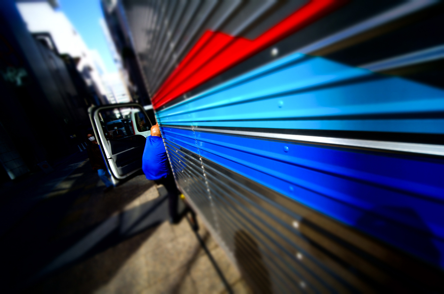 青いラインのトラックが気になっていたところに、正面から青いシャツの運転手がやってきた。青い線に近づいてシャッターを切ってみると流星っぽくなり、お気に入りの1枚になった。超広角のマニュアルフォーカスのレンズは距離計を30cm以上にしてF8当たりにしていればピントを気にせず瞬間を狙えるのでシャッターチャンスにめっぽう強い。なので超広角レンズを装着した小型カメラをサブ機として持ち歩くことをオススメする。