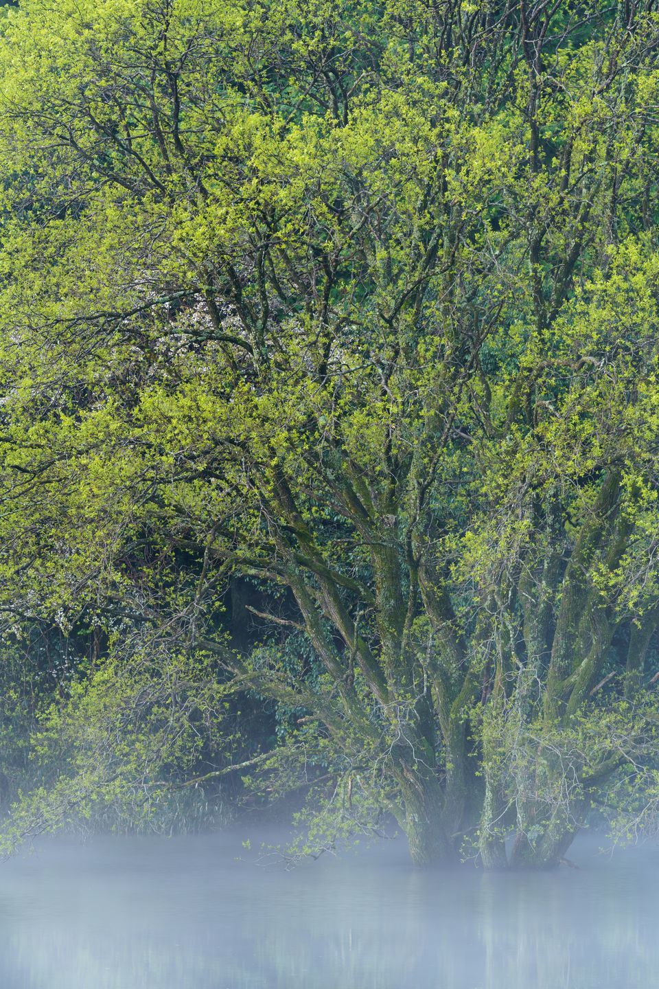 また、霧が深い時は前景を入れることで近くはハッキリ、遠くをぼんやり描くことで遠近感表現につなげることができます。そしてもう一つのおすすめは、森や林を探して中に入ること。霧のおかげで空間に浮かび上がる木々の模様が、遠くになるほど薄くなり奥行きが増します。