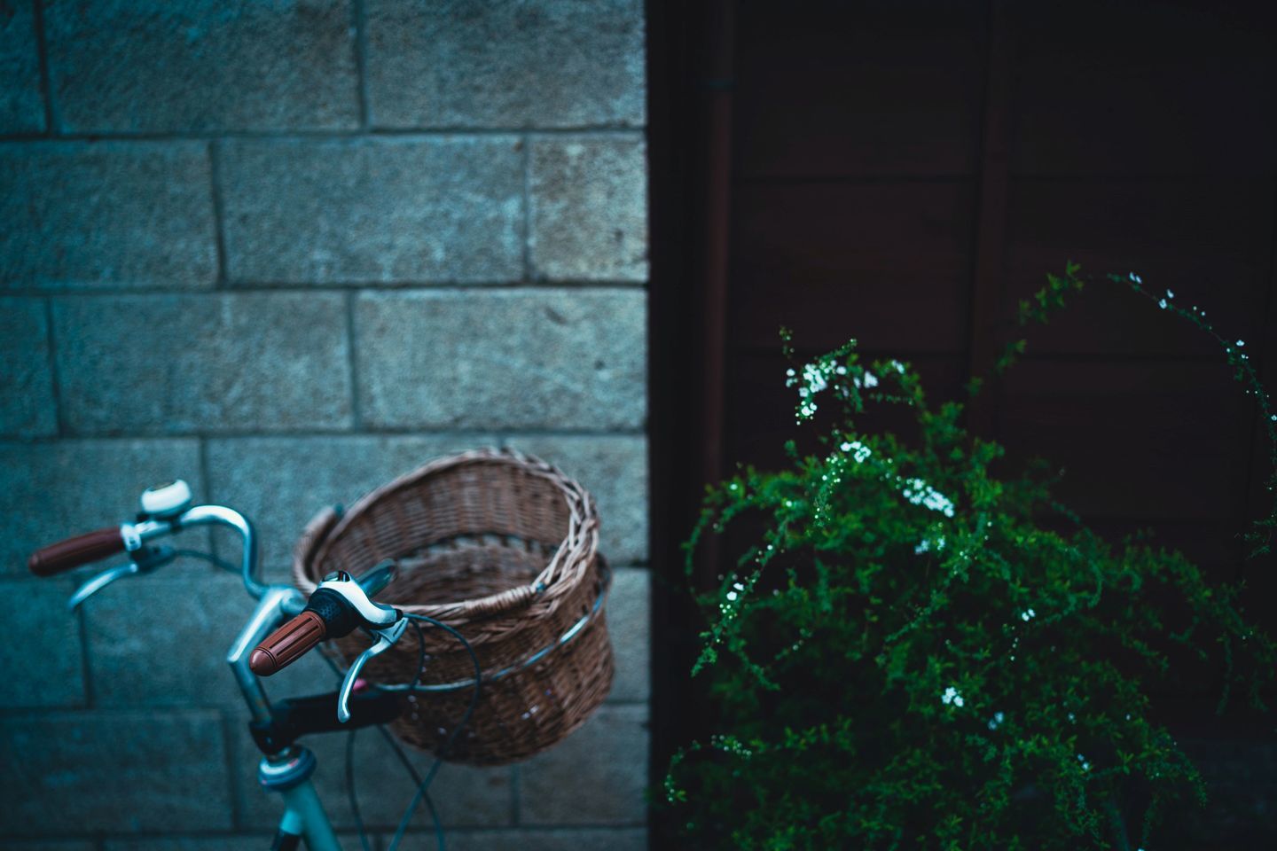 瞬間を捉えるのではなく、ただこの場所が気に入ったと思った時の撮り方。単焦点のお気に入りのレンズに付け直し、じっくり構図、ピント位置を考える。この場面でまず気になったのは自転車と対になっている雪柳の花。黒と白の境目を中心にして、余計なものが写り込まないようにぎりぎりまで下がってこの構図にした。ピントは手前のハンドルに。理由は手前にピントを持ってくることによって画面に立体感を出したかったからだ。こんな感じで花が混ざるスナップはボケを生かすと雰囲気がぐっと良くなるので、レンズ交換を面倒くさがらずに単焦点で撮るといい。
