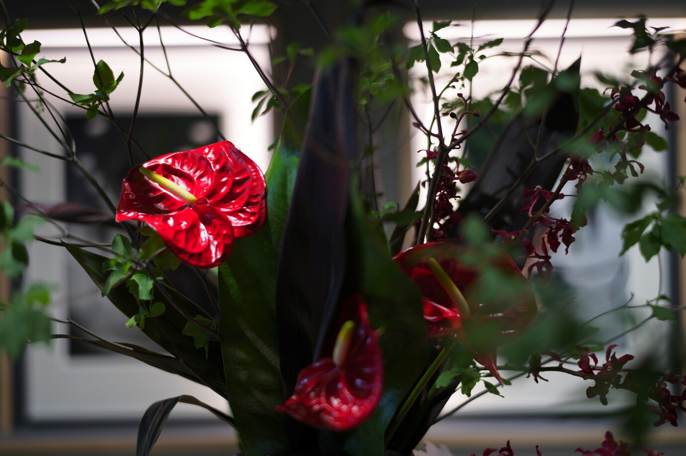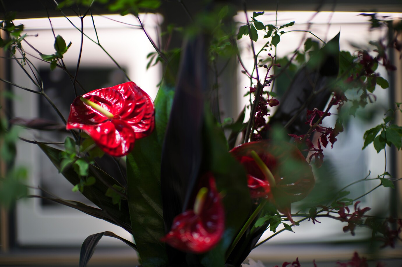 ライカの標準レンズといえば、フィルム時代から定番として君臨し続けているのがズミクロン。今回はノクティルックスの最短撮影距離に合わせて1mにあるアンスリウムにピントを合わせています。絞りは開放のF2です。立体感のある素晴らしい描写。背景も綺麗にボケています。