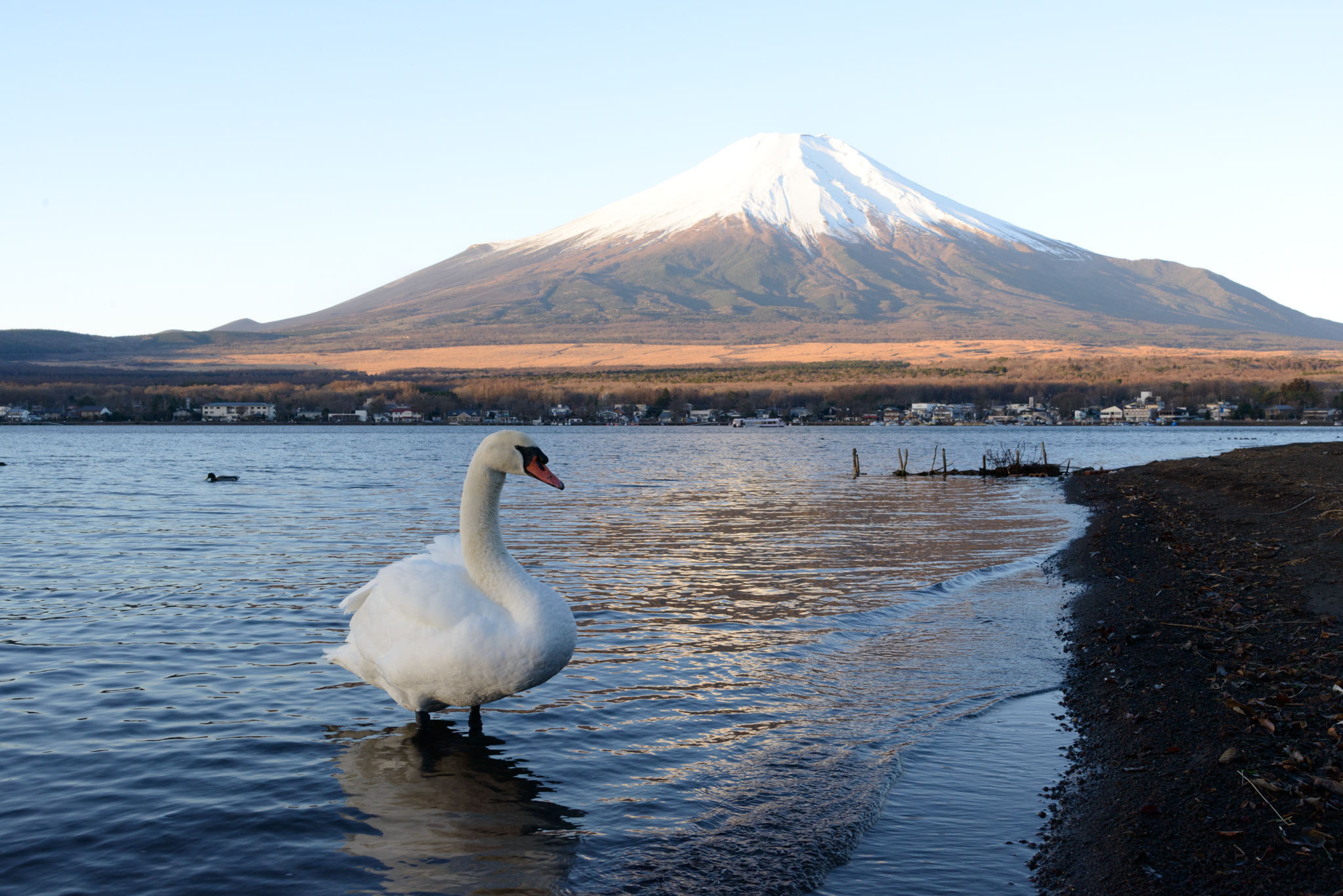 しかし、この写真のコンセプトを朝日で輝く富士山の冠雪と湖畔で凛と佇む白鳥の対比の面白さとすると、白鳥の存在感をもっと出してあげる方が魅力的になるはずです。