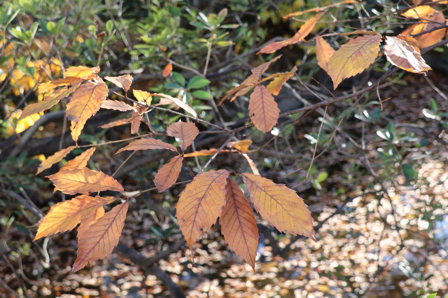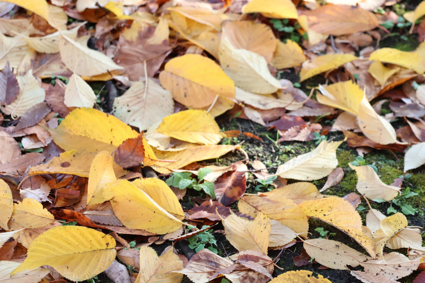 たくさんの落ち葉をアイポジション(目の高さ)から撮影。きれいではあるけれど、少し物足りないような…?
