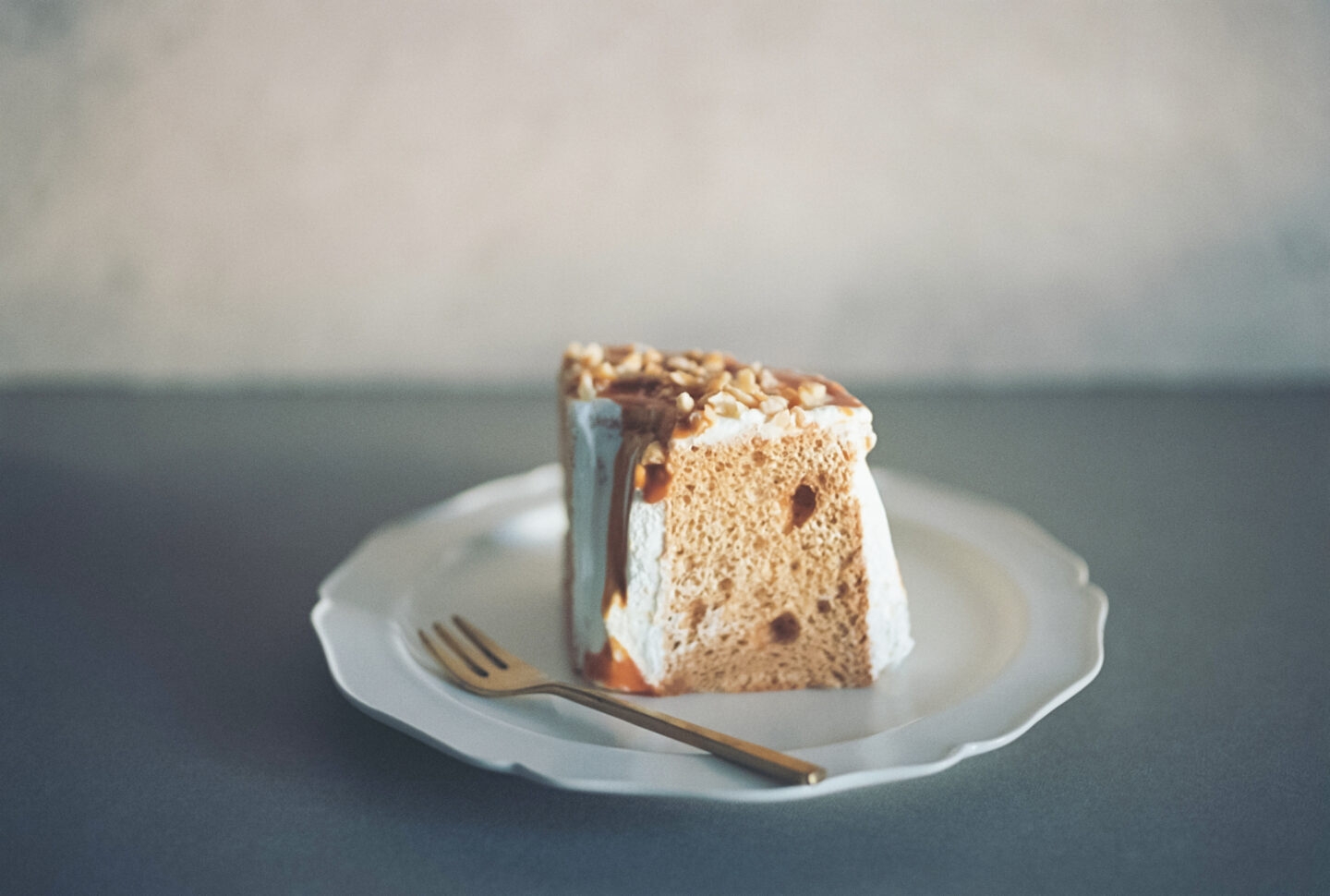 特にしっかりテーブルのスタイリングをしたわけではないですが、夕日に照らされたスポンジケーキが綺麗だったので思わず何枚か撮影していました。