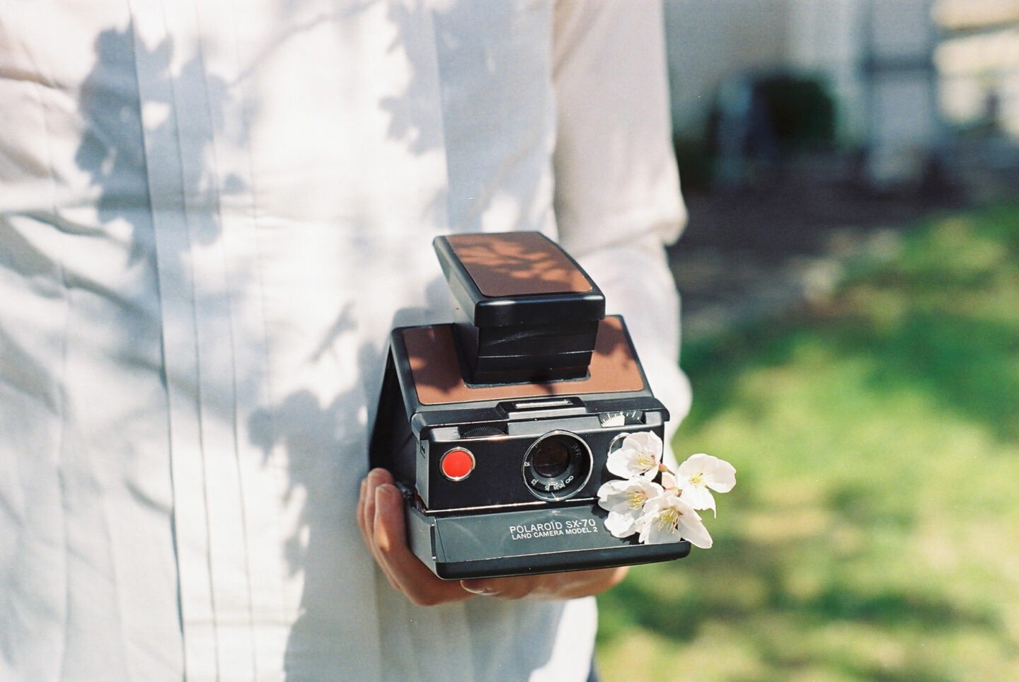 先程の手+桜の影の応用で、洋書や白い服などにも影は出ますし、お気に入りのカメラとも。