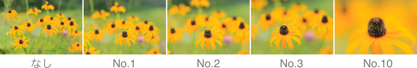 選び方として、近づいてより大きく撮影したい場合は、クローズアップレンズの番号が大きい物を選べばいいのです。いくつか種類がありますから、とりあえず1枚だけ持っているとしたら、No.3あたりが使いやすいと思います。