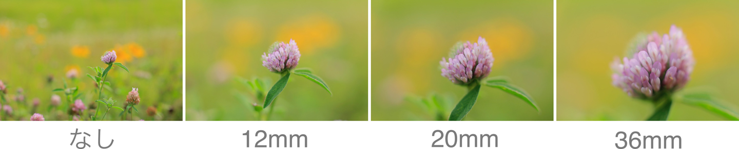 目安としては、取り付けるレンズの最短撮影距離と同じかそれよりも短い焦点距離のものを選ぶといいです。ズームレンズと組み合わせるとズーミングで被写体の大きさを調節できるので便利です。