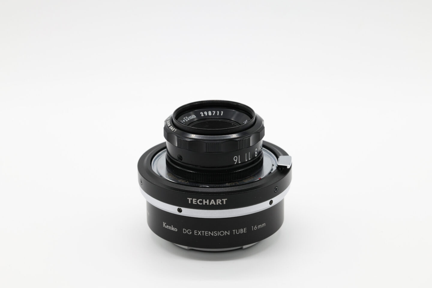L39マウントからM42マウントに変換するアダプターが必要なので、このアダプターの厚みの影響が1mm程度あり、残り16.4mmを調整する為に16mm厚の接写リングを組み合わせてみました。これで残り0.4mm分はマウントアダプターの「TECHART LM-EA9」の稼働領域でカバーできるのではないかと思い、早速組み合わせてみました。