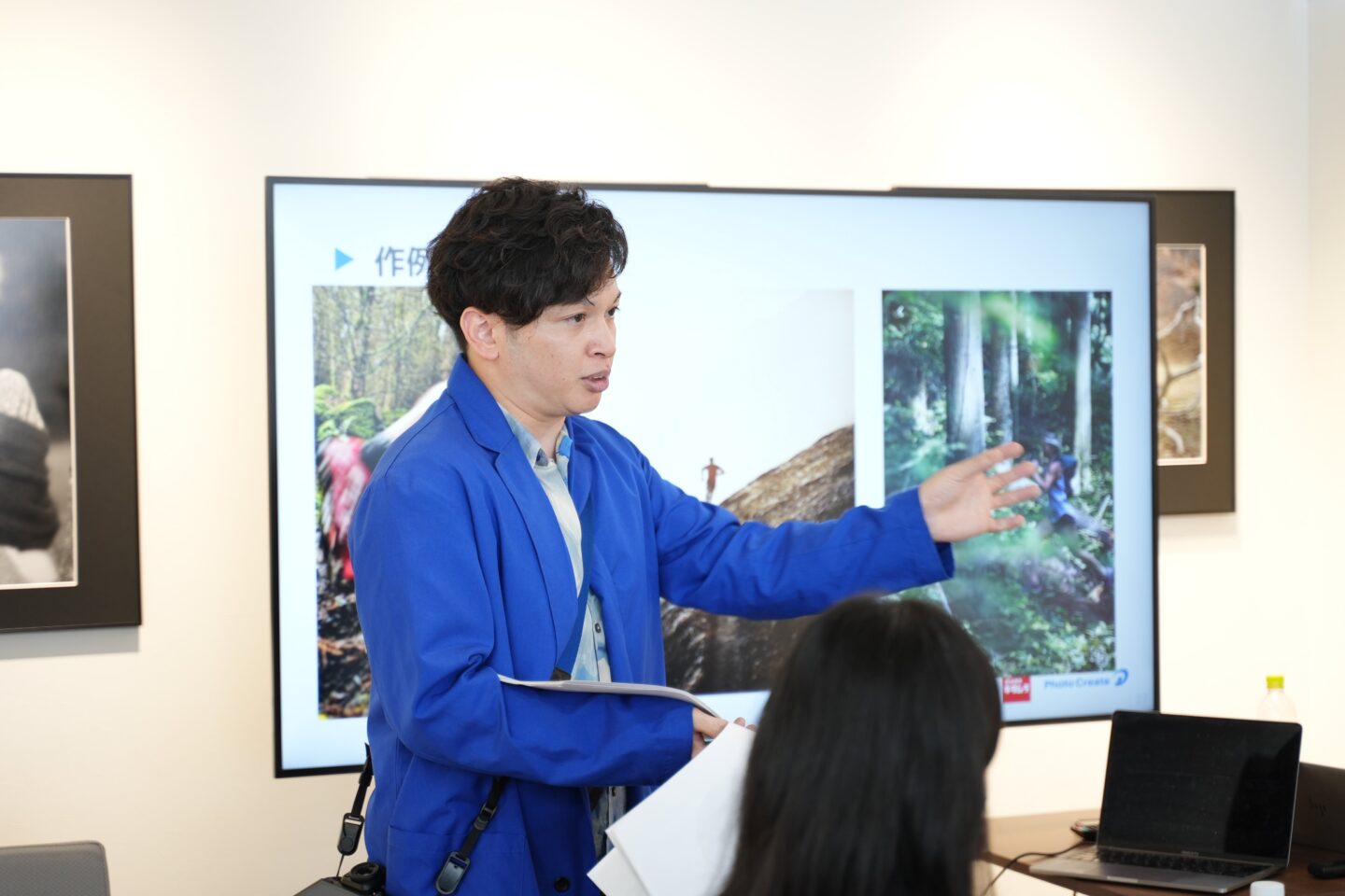 1日目の座学では、事前に提出いただいた作例や使用機材をもとに、講師の榮留さんが一人ひとりを紹介。写真への価値観を共有したうえで、トレイルランの作例を見ながら撮影のポイントを解説しました。翌日の実習に向けて「撮ってみたいシーン」をヒアリングし、具体的なアドバイスや注意点も伝えられました。