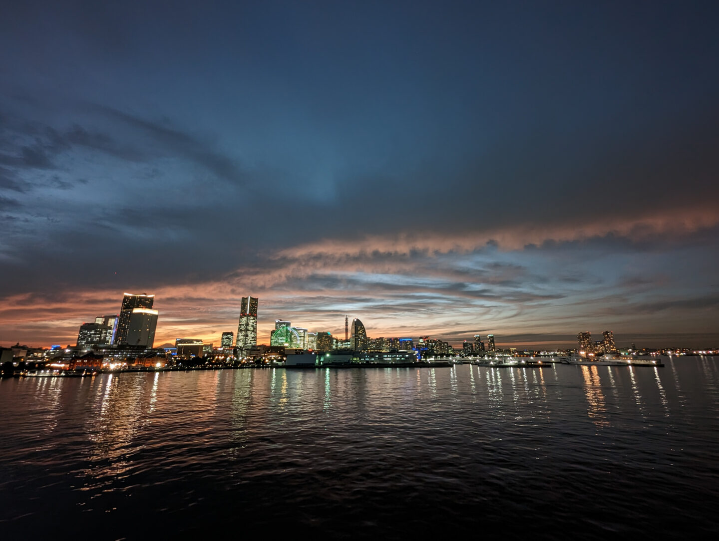 グーグルの「Pixel」シリーズというと「夜に強いスマホ」という印象をお持ちの方が多いでしょう。「Night Sight(ナイトサイト)」と呼ばれるナイトモードは誰が使っても美しい夜景シーンを撮影できるのです。ヨコハマの薄暮シーンを撮りましたが、みなとみらいの建物群と明るさが残った空、そして横浜港の様子までしっかりと写しだしてくれました。明るさのバランスが絶妙ですよね。さすが夜景番長と異名を取るPixelシリーズの最新機「Pixel 7 Pro」と言えます。