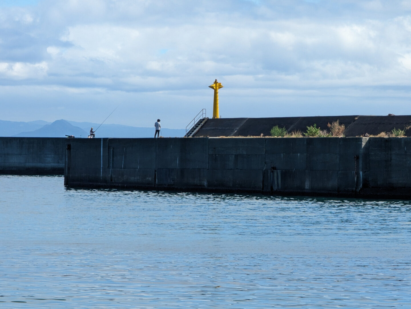 「Pixel 7 Pro」の超望遠はこんなカットを手軽に撮影できます。対岸にある防波堤で釣りをする人をググッと引き寄せて撮れました。しかもディテールも良好です。スマートフォンとは思えない仕上がりですね。