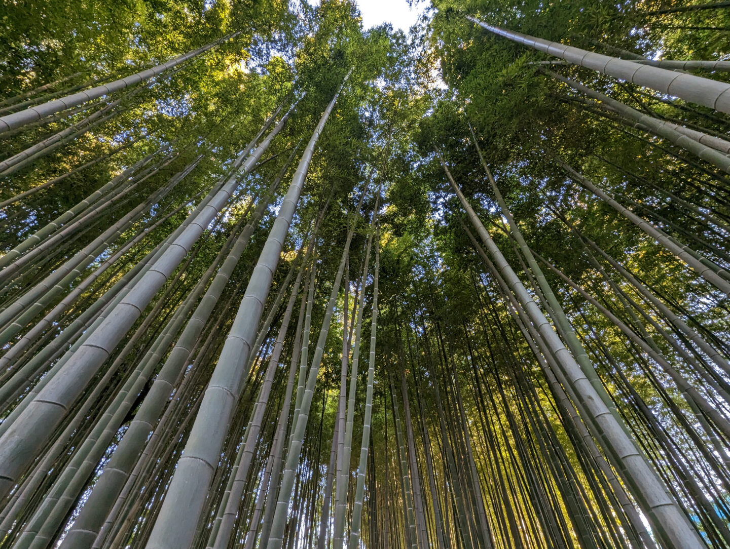 竹林をウルトラワイドカメラであおって撮影しました。画面中央部はもとより、周辺部までシャープな写真になっています。葉の様子までちゃんと確認できるほどの描写力ですね。空とは明暗差がかなりあったのですが、AIパワーによるコンピュテーショナルフォトグラフィーのおかげで、肉眼に近い印象のカットになっています。
