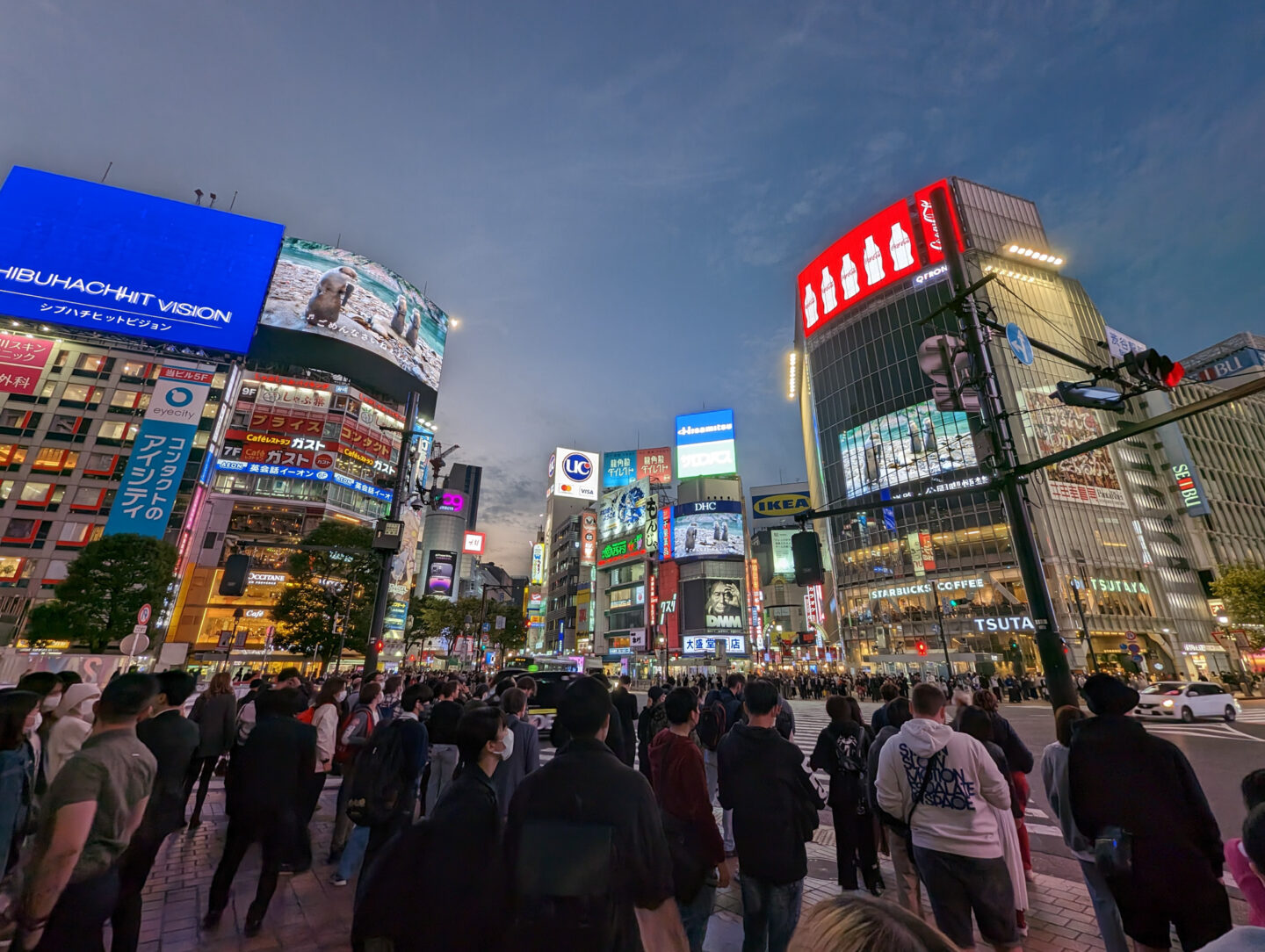 日没直後の渋谷ハチ公前スクランブル交差点です。信号待ちの間に「Pixel 7 Pro」を頭上に掲げて何気なくシャッターを切ったカットですが、空からネオンサイン、人々の様子までちゃんと捉えられています。夕方から夜に変わりつつある街の雰囲気をしっかりと再現してくれました。「Pixel 7 Pro」は本当にスゴいですね!