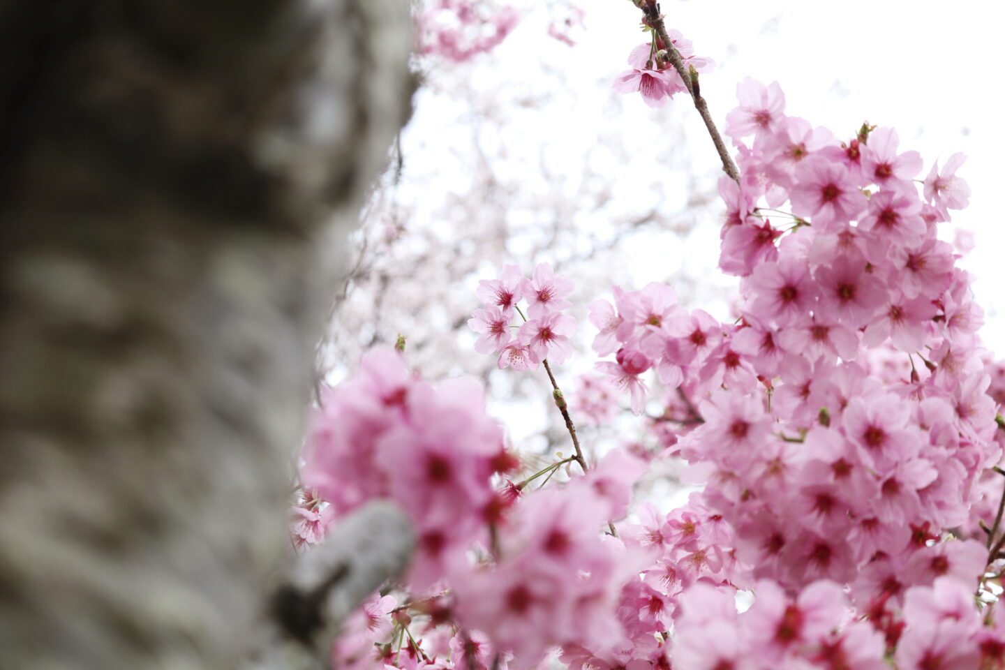 どのような桜でも枝先の花にピントを合わせれば、その向こう側にある枝は花で隠すことができるので、画面全体を明るい色だけでまとめやすくなります。