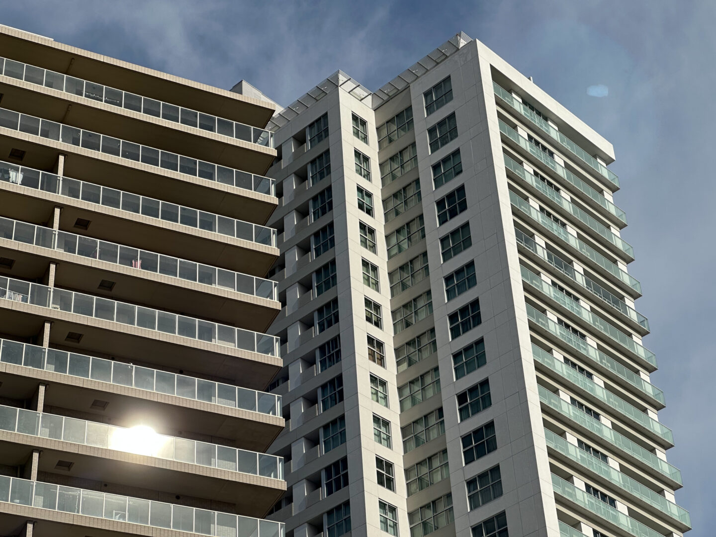 高層マンションの壁面タイル部分の描写がいいですね。凹凸の感じやタイル、手すりの様子まで緻密に再現しています。ゴーストが発生していますがそれ以外は合格点の写りです。