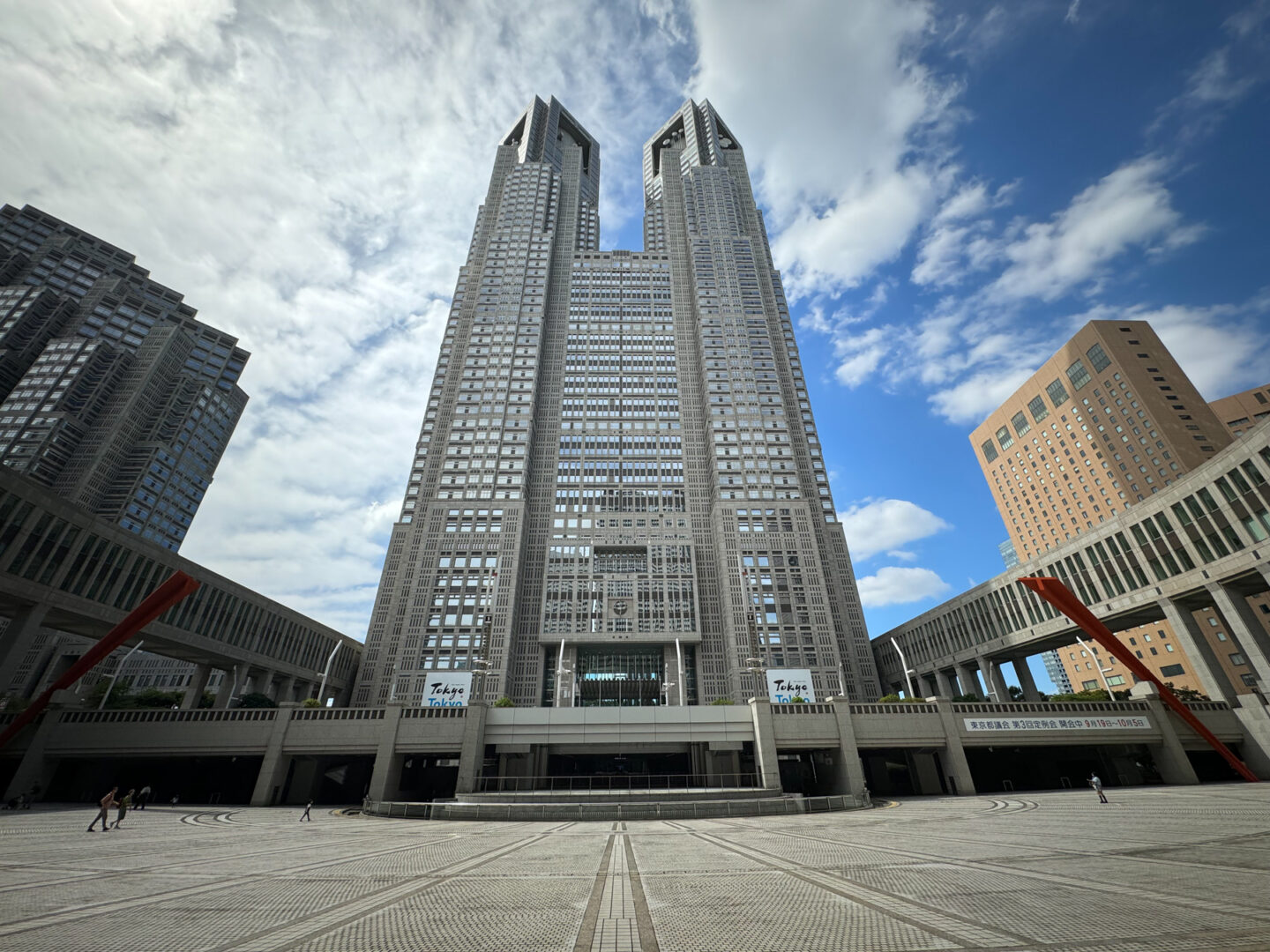 超広角カメラで新宿の東京都庁舎を撮りました。全景がラクラク収まる画角は魅力です。広大な風景や狭い室内でも撮影が楽チンでしょう。
