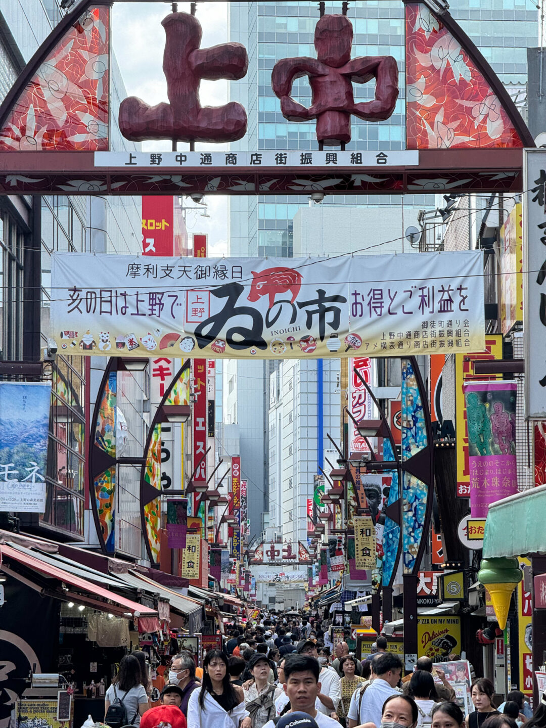 アメ横でのカットです。120mmの望遠効果が出ていますね。手前のアーチとバナー、そして連なる商店と買い物客の様子がググッと圧縮されて写っています。この端末ならではの描写です。