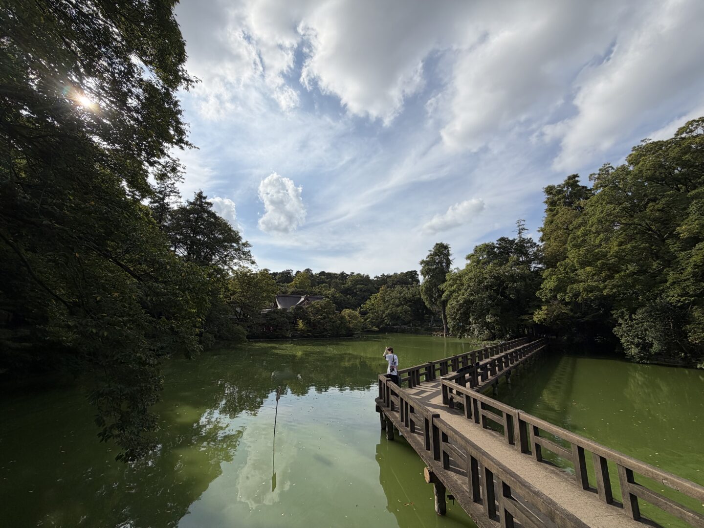 井の頭公園でのカットです。鬱蒼とした木々と青空に浮かぶ雲、橋の様子まで「iPhone 17 Pro」はリアルに写し出してくれました。超広角カメラのワイド感は迫力がありますね。