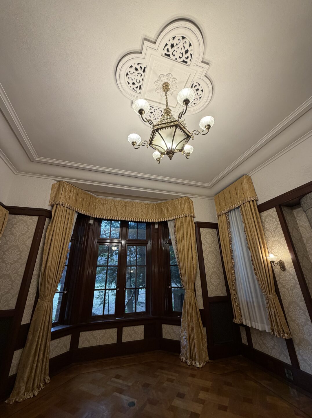 超広角カメラで洋館の室内を撮りました。ムーディーな色合いだったのですが、かなりホワイトバランスが補正され、良く言えばニュートラルですが、現場のムーディーな雰囲気は少し薄れてしまいました。このような場合は「フォトグラフィックスタイル」で好みの色合いに調整するのも良いでしょう。