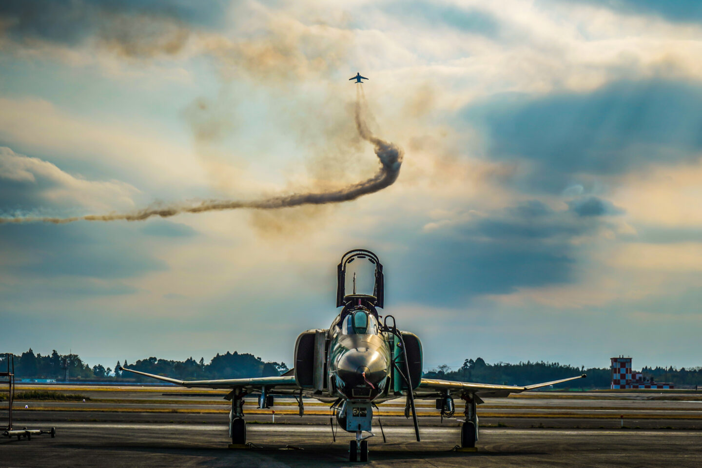空の表情、真上に飛ぶ機体とスモークの形もいいですね。ちょうど真上っていうのがすごくいい。