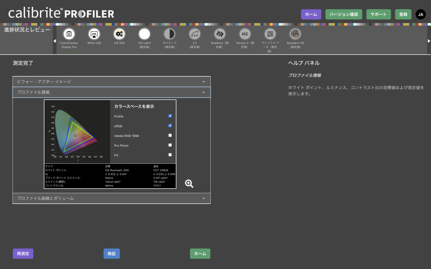 最終的にはICCプロファイルが作成されるので、それを保存し設定・使用します。