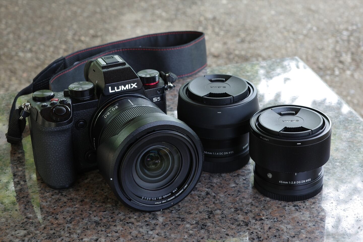 カメラボディー+標準ズームレンズ+単焦点レンズ2本。あるいは、ミラーレスカメラ2機に単焦点レンズという収納力があります。今回は以下のカメラとレンズを収納しています。