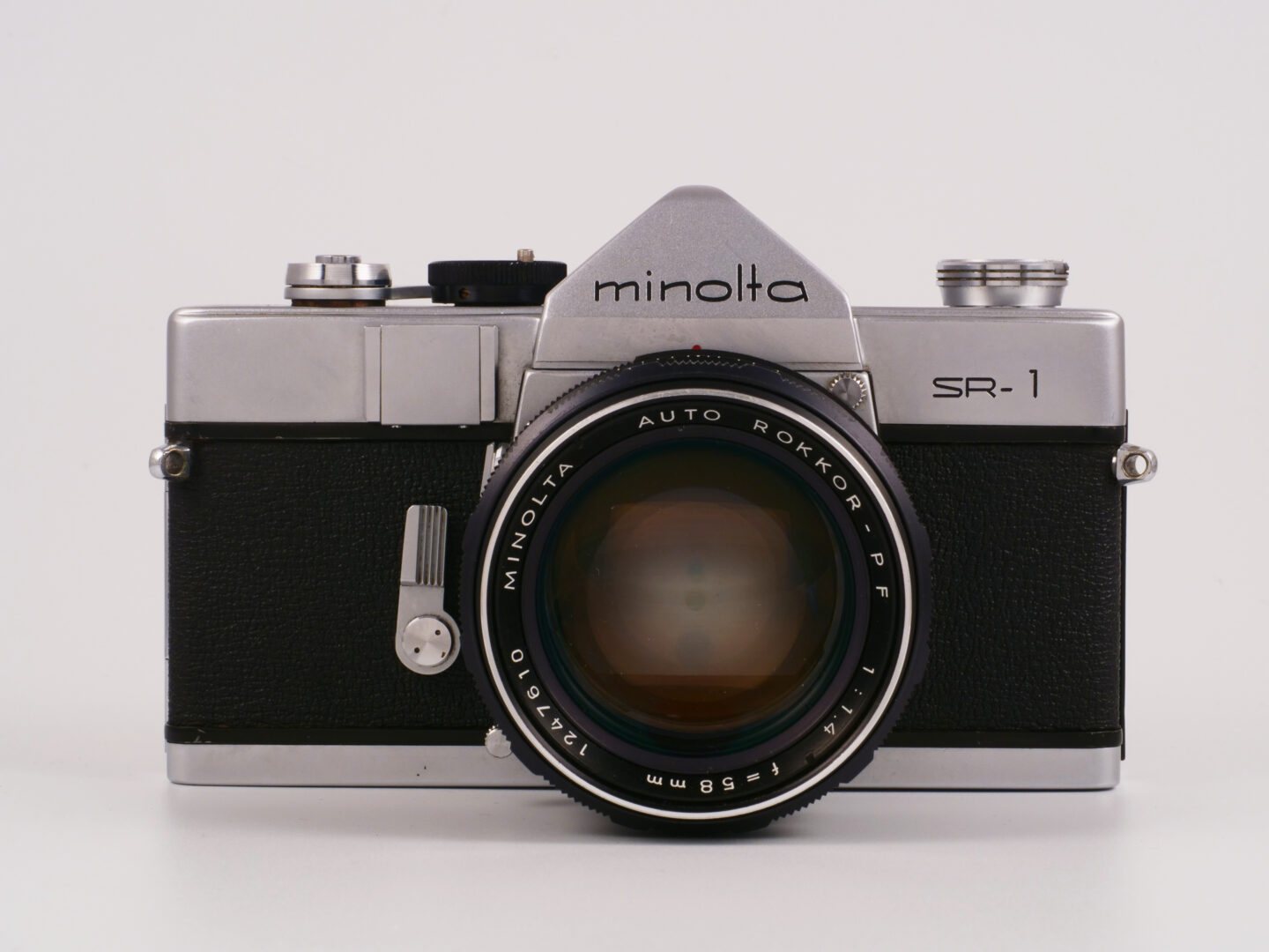 ミノルタ new SR-1は、ミノルタカメラが1965年に発売開始した35ミリ判の一眼レフです。本体にnewの表記がないのにどうしてnewなのかといえば、1959年に登場したミノルタSR-1の改訂バージョンにあたる機体だからです。この当時のミノルタカメラの型番は少々ややこしい部分があり、ミノルタの35ミリ判一眼レフ初号機はSR-2で、SR-1は廉価版の位置付けでした。
