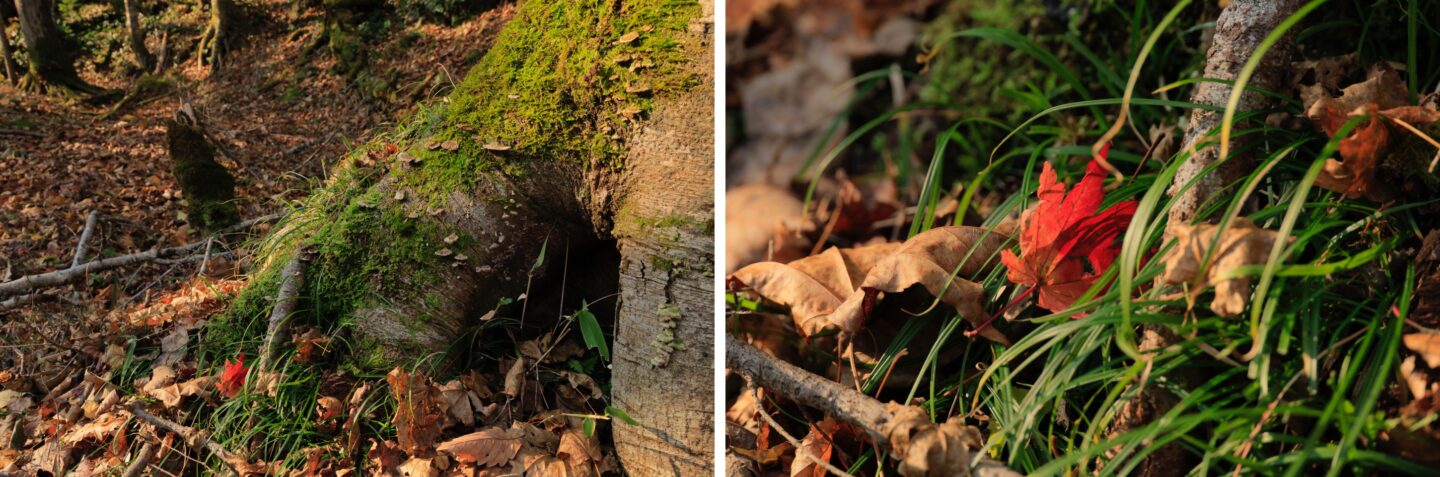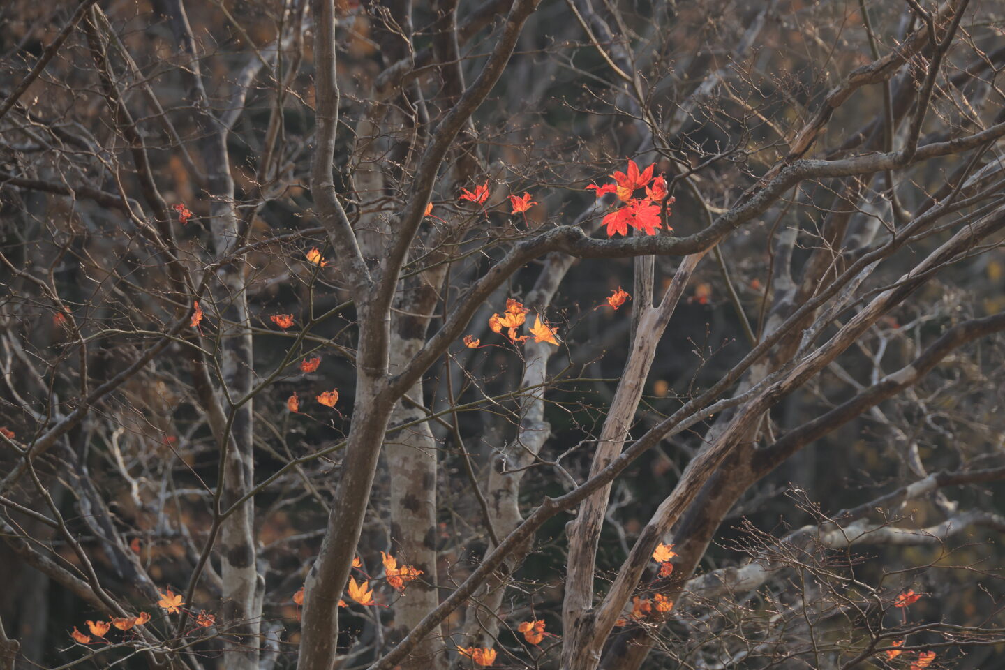 今回も紅葉をメインに歩いているときにはあえて避けていた緑も落ち葉の中では鮮やかに見えてきて、いい被写体になりました。紅葉がいっぱいで鮮やかに見えていた木も、枝ぶりが目立つようになって違う魅力を感じられるようになりました。何か興味を引くものがないか探してみて、いいと思えるものがあれば、積極的に撮影しましょう。