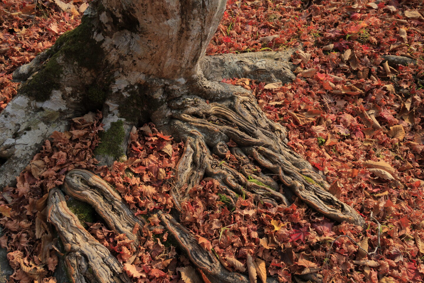 紅葉のピーク過ぎであれば、色に注目して残っている紅葉を探していくという感じです。今回撮影したところではほとんど落葉していたので、視点を足元に向けていくようにしました。地面一面に広がっている落ち葉をメインに、気になったところを撮影していくのです。こういった風景も季節の移り変わりを表現するうえでは大切な要素になりますので、じっくり見ていきましょう。