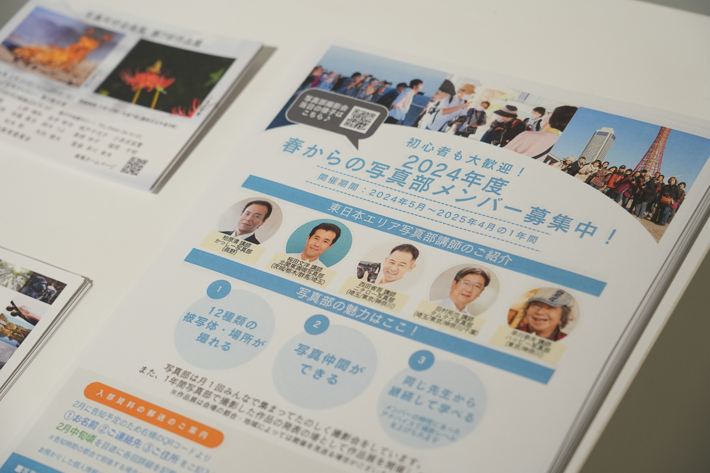 写真部には、世代・性別・地域・国籍を超えて、写真が好きな気持ちで結びつく仲間が集まっています。1年を通してメンバー同士の交流を深め、写真部講師のレクチャーを受けながら継続して写真を学んでいます。