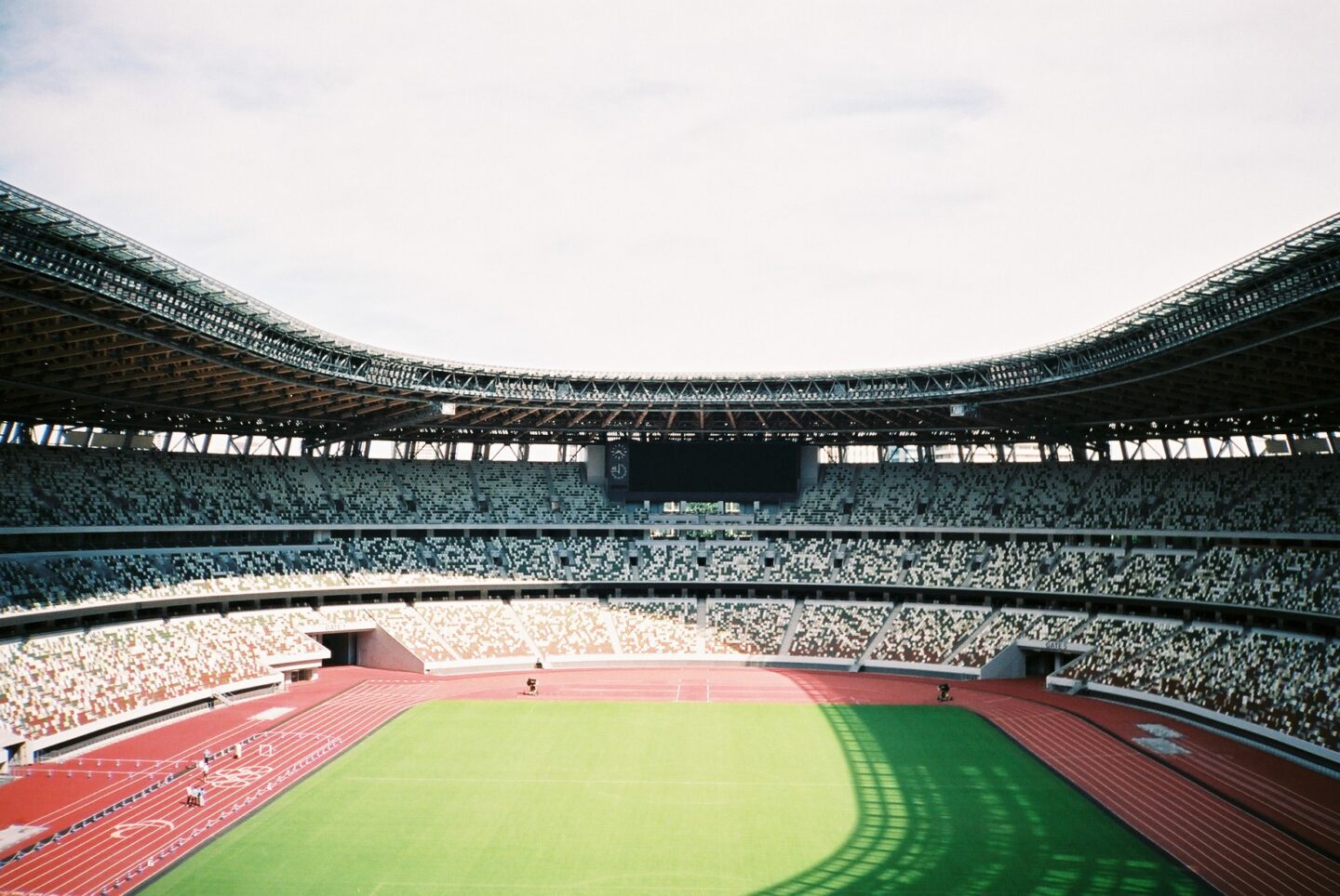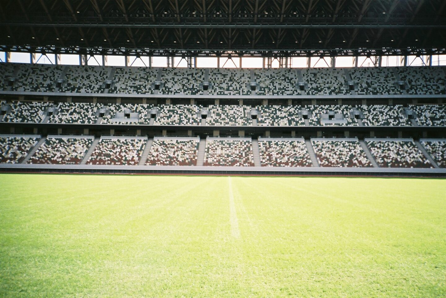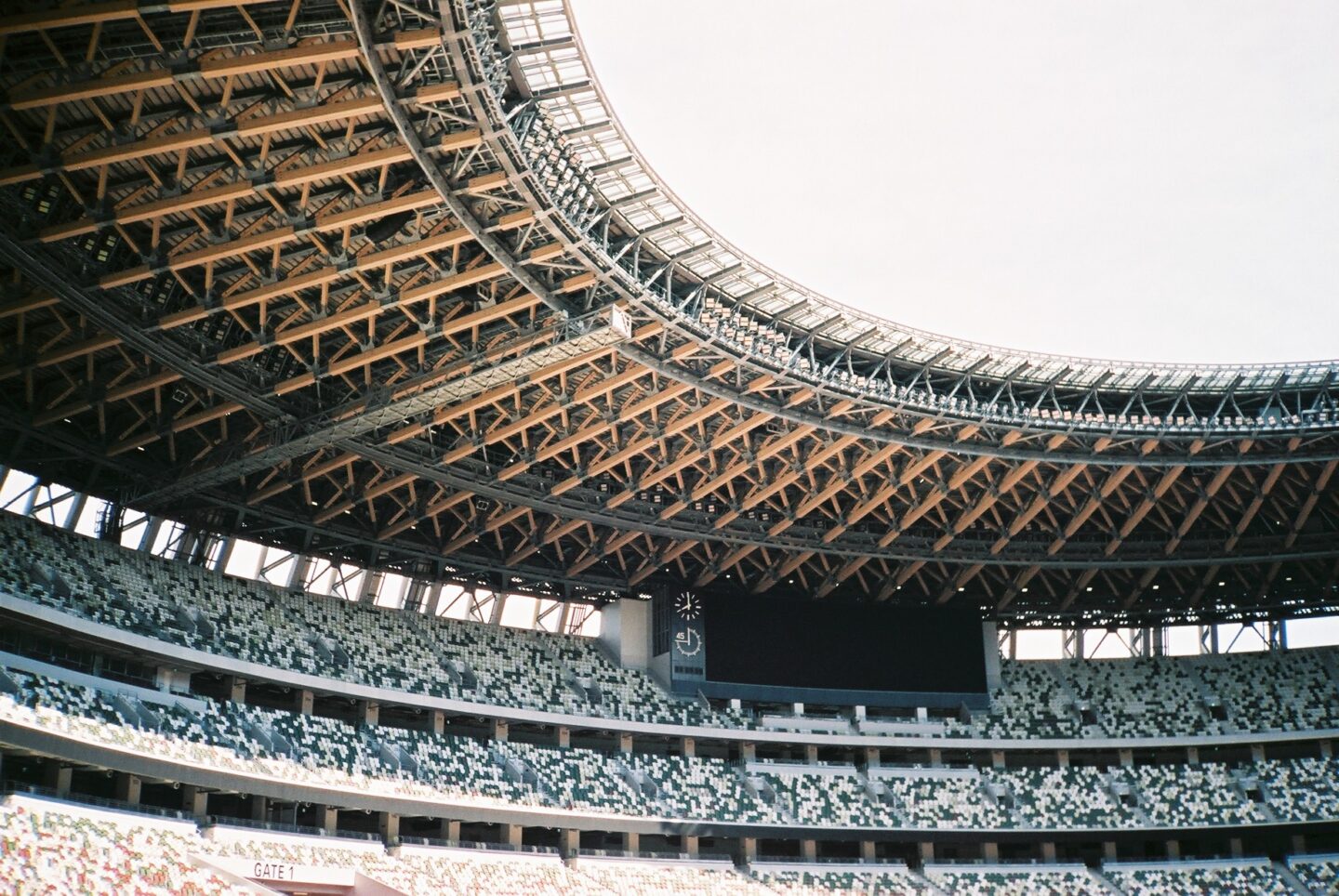 「MINOLTA PROD-20’s」の焦点距離は、35mmなので広大な国立競技場の全体を収めることはできませんでした。全体を撮ろうと思うと焦点距離12mm相当や魚眼レンズが必要な感じです。ですが4階の観客席からの景色は壮大です。