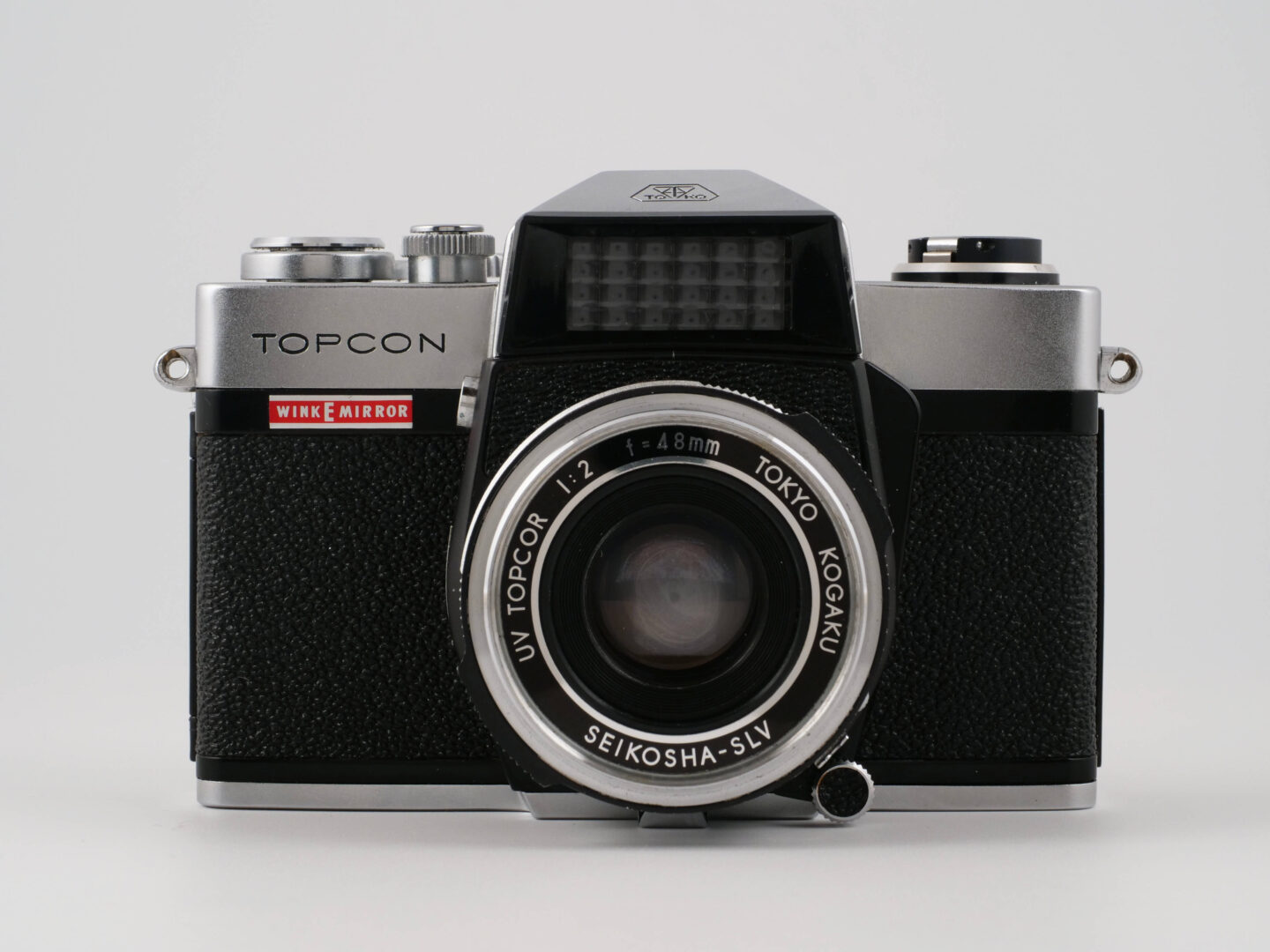 このカメラ、ボディの肩にWINK E MIRRORという赤いバッジが貼ってあるのでトプコン ウインクEミラーと表記されることもありますが、正しくはトプコン ウインクミラーEです。Eは正面についたセレン光電池による外交式の露出計を内蔵していることを示しているようです。ファインダー内で指針を合わせる露出決定は操作性もよく、スプリットイメージによるピント合わせの正確さもあり、意外に使い勝手の良いカメラです。本機のレンズは48mm F2のUVトプコール。レンズは固定式で先端にねじ込むワイド・テレコンバージョンレンズが用意されていたようですが、今となっては探すのも難しいので潔く標準レンズの画角で撮影を楽しむ方がハッピーになれると思います。