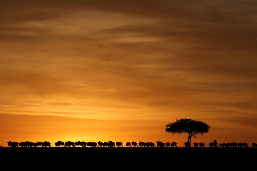 ケニアのマサイマラ動物保護区では、毎年7月になるとヌーという名のウシ科の動物がタンザニアから移動してきます。徐々に数を増やし、8月〜9月が最多になります。その数は、総べ100万頭を超えると言われており、ヌーはタンザニアのセレンゲティ大平原などで1年の多くの時期を過ごし2月頃に出産のピークを迎え、間も無くすると移動を始めます。ヌーが移動をするのは、好物の芽吹いたばかりのやわらかい草を食べるためと言われています。
