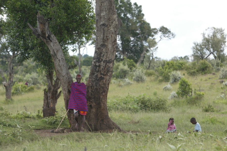 ケニアの草原にはマサイ族も暮らしています。国立公園や国立保護区の中に住むことはできないのですが、エリアの周辺に住宅を見かけます。マサイ族は昔ながらの生活をしている人も多く、ドロとウシのフンで壁を作る小さな家が10〜20戸程度が一つの村となり、ぐるっと円を描く用に建てられていて、その周辺は枯れ枝などで囲いを作ります。夜になると放牧していた家畜のウシやヤギ、ヒツジを円の中心にしまいます。