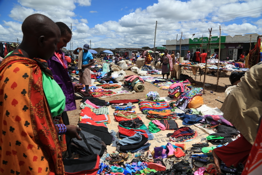 村で暮らすマサイ族の人たちも週に一度の青空市場(スワヒリ語でソコ)に買い物に出かけます。近くの町(といっても数キロなら近い方で)へ何時間もかけて買い物に行きます。その市場は私も大好きで曜日が合えばたまに寄ってもらいます。市場では、果物や紅茶葉などや、日用雑貨、衣類など生活に必要なものが並んでいます。