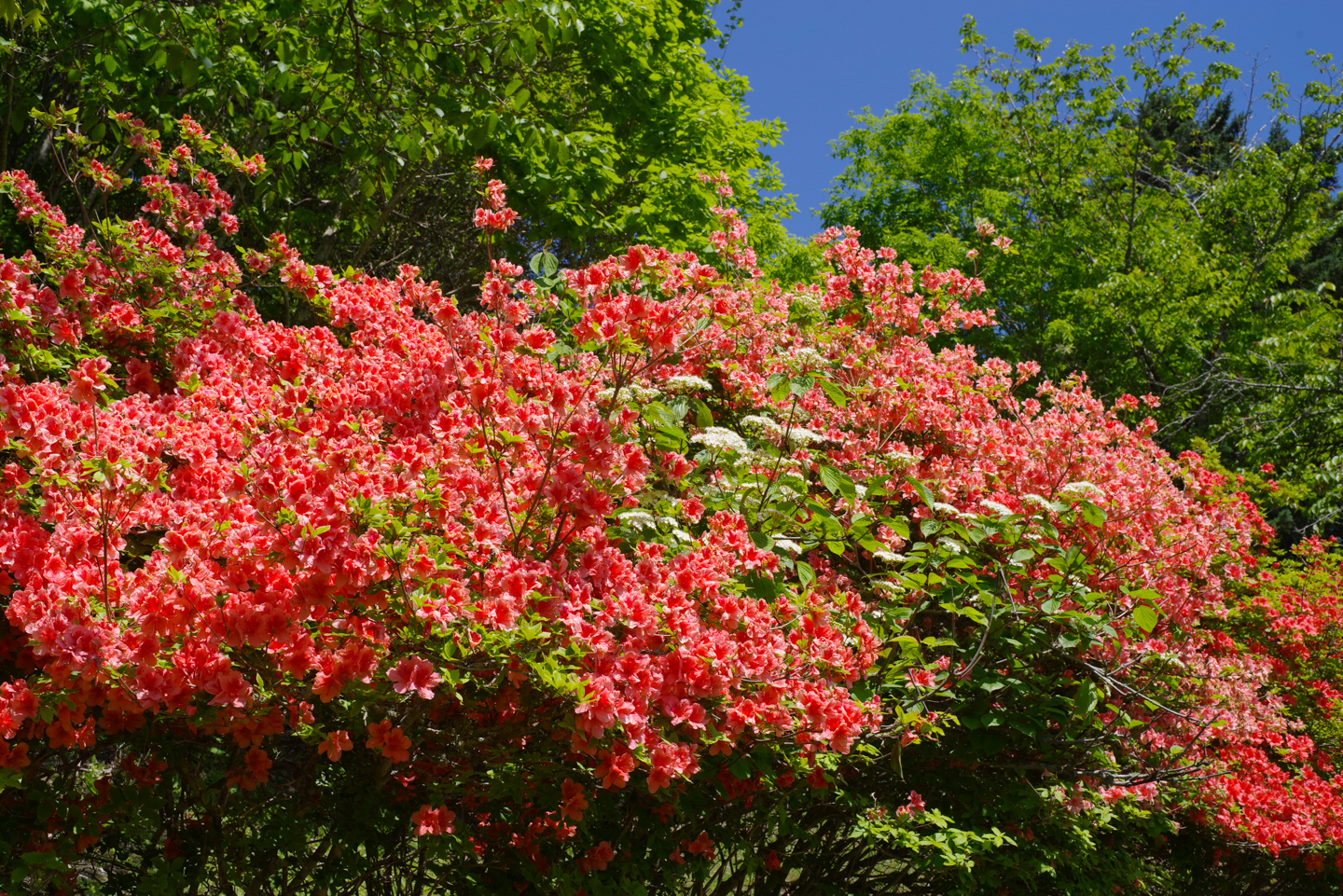 まず開放絞りのF1.4で撮影すると、背景のボケも大きくツツジもピントを合わせた画面中央のあたり以外はボケているのがわかる。ピントを合わせたところでも若干滲みが見られ、レンズの収差が残っているのがわかる。柔らかい描写だ。