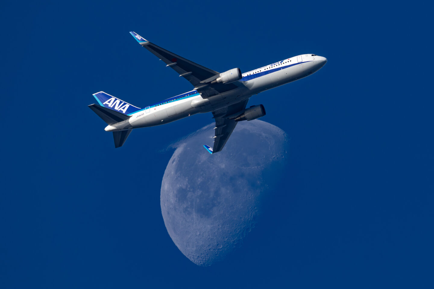 被写体認識「飛行機」ももちろん搭載。機体が小さくてもコクピットの窓にフォーカスを合わせようとしてくれます。こちらの作品も、以前はフレームに飛び込む前の機体にONE SHOT AFでフォーカスを合わせ、置きピンのようにして撮影していたシーン。R1では月に画角をあわせ、AIサーボに設定し、機体がフレームインしてきたと同時にシャッターボタンを半押し〜全押しして撮影するという具合に変化しています。ただ、あまりにも慌ただしいので、プリ連写も設定しておくのがオススメ。プリ連写はシャッターボタンを押し込んだタイミングより、最大約20コマさかのぼって記録してくれるという機能です。